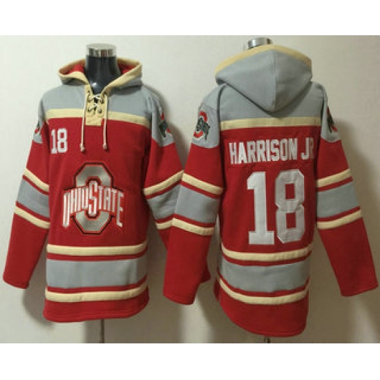 >Men's Ohio State Buckeyes #18 Marvin Harrison Jr Red Ageless Must Have Lace Up Pullover Hoodie