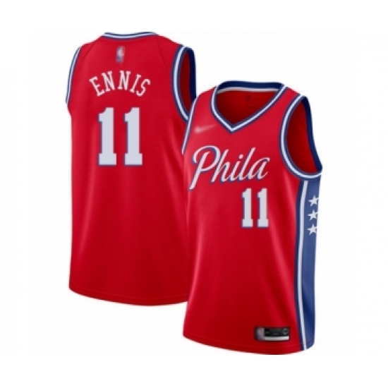 >Men's Philadelphia 76ers #11 James Ennis Authentic Red Finished Basketball Jersey - Statement Edition