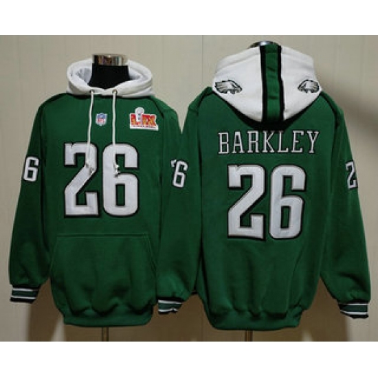 >Men's Philadelphia Eagles #26 Saquon Barkley Green Super Bowl LIX Pullover Hoodie
