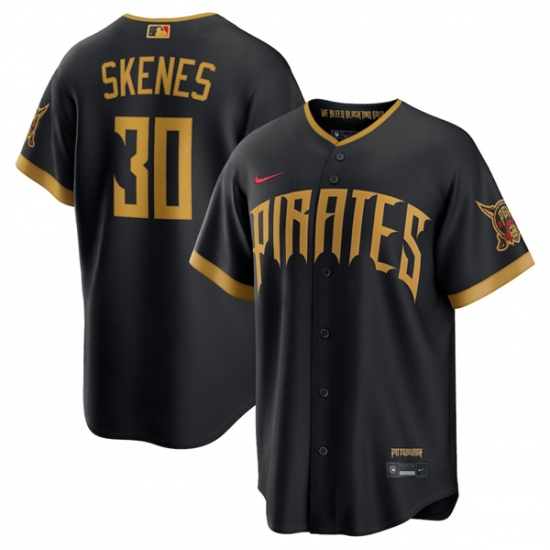 >Men's Pittsburgh Pirates #30 Paul Skenes Black 2026 City Connect Stadium Stitched Stitched Baseball Jersey