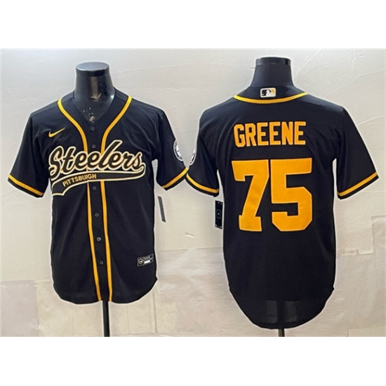 Men's Pittsburgh Steelers #75 Joe Greene Black With Cool Base Stitched Baseball Jersey