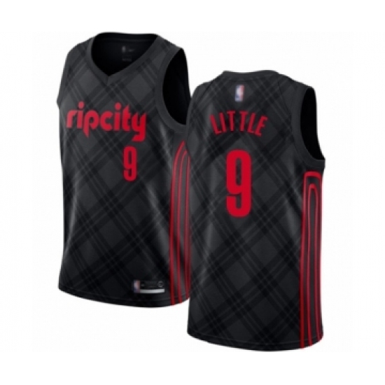 >Men's Portland Trail Blazers #9 Nassir Little Authentic Black Basketball Jersey - City Edition