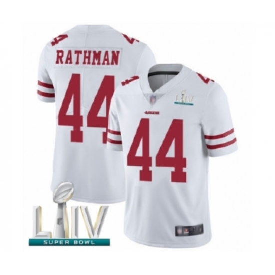 Men's San Francisco 49ers #44 Tom Rathman Limited White Rush Vapor Untouchable Super Bowl LIV Bound Football Jersey
