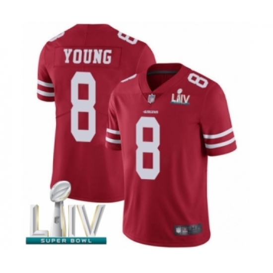 >Men's San Francisco 49ers #8 Steve Young Red Team Color Vapor Untouchable Limited Player Super Bowl LIV Bound Football Jersey