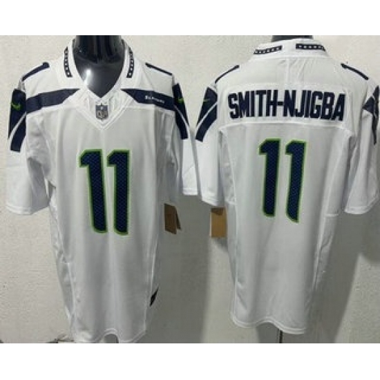 >Men's Seattle Seahawks #11 Jaxon Smith Njigba Limited White FUSE Vapor Jersey