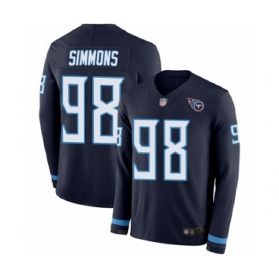 >Men's Tennessee Titans #98 Jeffery Simmons Limited Navy Blue Therma Long Sleeve Football Jersey