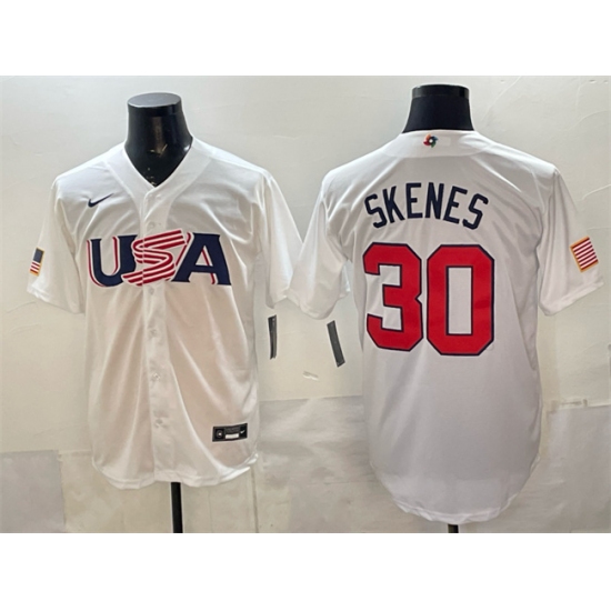 >Men's USA Baseball #30 Paul Skenes White World Baseball Classic Stitched Jersey