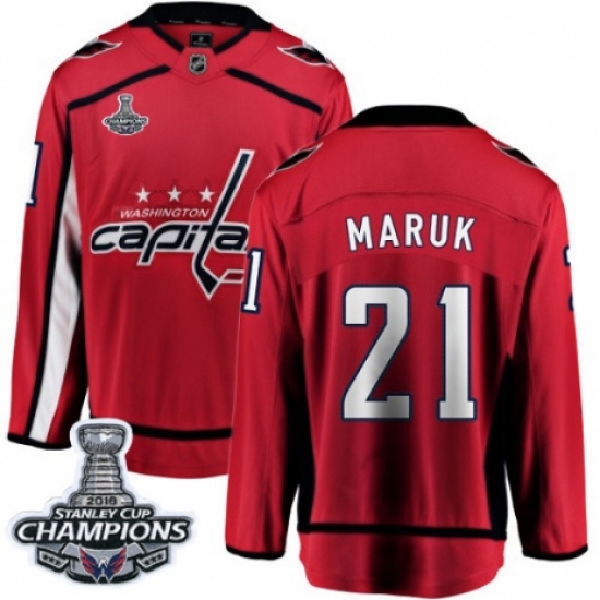 >Men's Washington Capitals #21 Dennis Maruk Fanatics Branded Red Home Breakaway 2018 Stanley Cup Final Champions NHL Jersey
