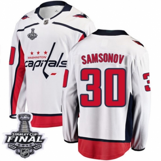 Men's Washington Capitals #30 Ilya Samsonov Fanatics Branded White Away Breakaway 2018 Stanley Cup Final NHL Jersey