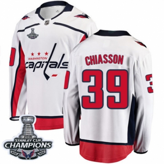 >Men's Washington Capitals #39 Alex Chiasson Fanatics Branded White Away Breakaway 2018 Stanley Cup Final Champions NHL Jersey