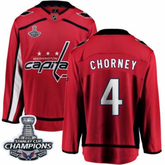 Men's Washington Capitals #4 Taylor Chorney Fanatics Branded Red Home Breakaway 2018 Stanley Cup Final Champions NHL Jersey
