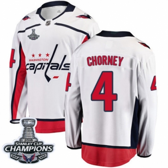 Men's Washington Capitals #4 Taylor Chorney Fanatics Branded White Away Breakaway 2018 Stanley Cup Final Champions NHL Jersey