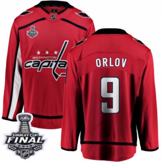 Men's Washington Capitals #9 Dmitry Orlov Fanatics Branded Red Home Breakaway 2018 Stanley Cup Final NHL Jersey