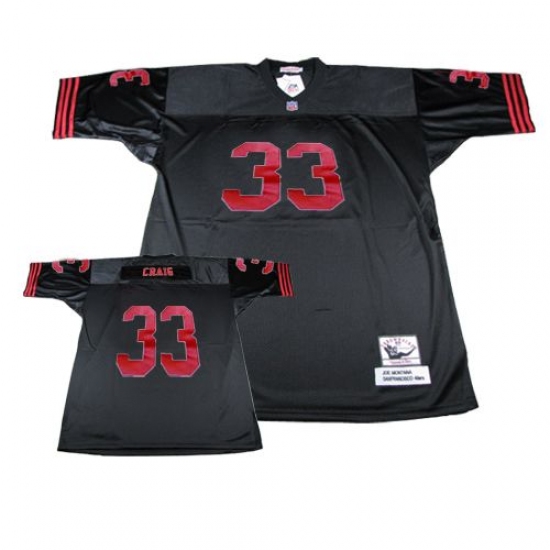 Feel like part of your favorite team by wearing this NFL® Mitchell and Ness San Francisco 49ers #33 Roger Craig Authentic Black Throwback NFL Jersey, made of thick, high-quality Pro-Brite fabric for a genuine gridiron look. The players number which 100% stitched is displayed in tackle twill on the chest, back and sleeves, along with the team name on the front. The players name which 100% stitched is displayed on a sewn-down nameplate at the back. 100% Pro-Brite nylon and 100% Pro-Brite polyester for body, 100% lycratalic spandex dazzle for Side Panels/Collar/Cuffs, NFL® Equipment patch sewn on the bottom of the front collar or fabric insert, NFL® Equipment jock tag with numeric sizing is applied to the lower left bottom of the jersey, Reebok® logo embroidered on each sleeve, Officially licensed