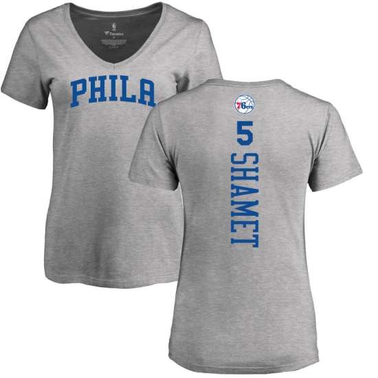 >NBA Women's Nike Philadelphia 76ers #5 Landry Shamet Ash Backer T-Shirt