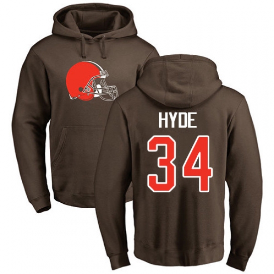 NFL Nike Cleveland Browns #34 Carlos Hyde Brown Name & Number Logo Pullover Hoodie