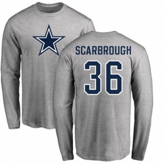 NFL Nike Dallas Cowboys #36 Bo Scarbrough Ash Name & Number Logo Long Sleeve T-Shirt