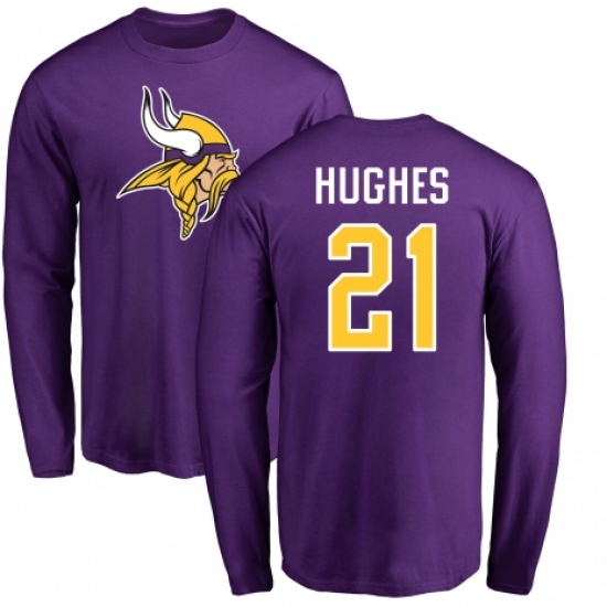 >NFL Nike Minnesota Vikings #21 Mike Hughes Purple Name & Number Logo Long Sleeve T-Shirt