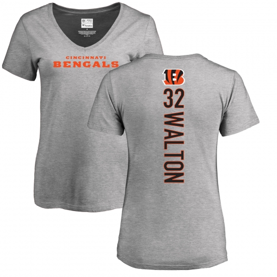 >NFL Women's Nike Cincinnati Bengals #32 Mark Walton Ash Backer V-Neck T-Shirt