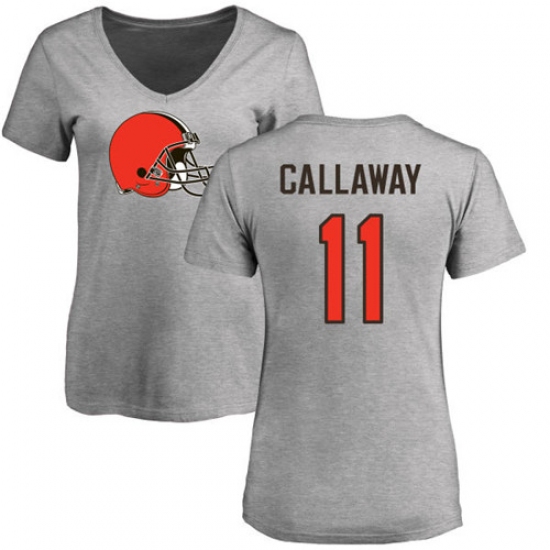 NFL Women's Nike Cleveland Browns #11 Antonio Callaway Ash Name & Number Logo T-Shirt