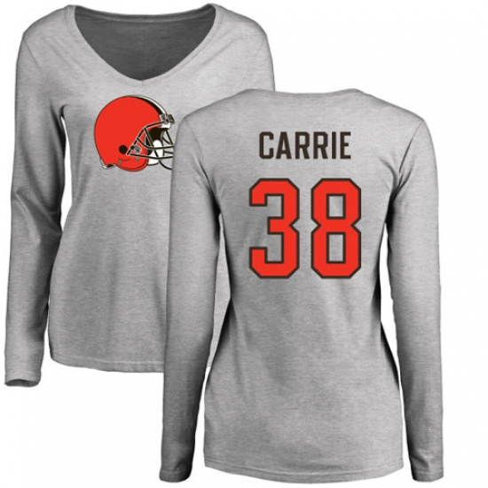 >NFL Women's Nike Cleveland Browns #38 T. J. Carrie Ash Name & Number Logo Long Sleeve T-Shirt
