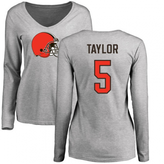 NFL Women's Nike Cleveland Browns #5 Tyrod Taylor Ash Name & Number Logo Long Sleeve T-Shirt