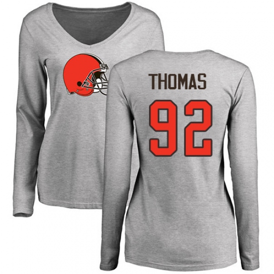 NFL Women's Nike Cleveland Browns #92 Chad Thomas Ash Name & Number Logo Long Sleeve T-Shirt