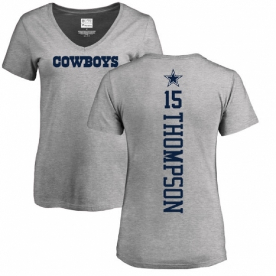 >NFL Women's Nike Dallas Cowboys #15 Deonte Thompson Ash Backer V-Neck T-Shirt