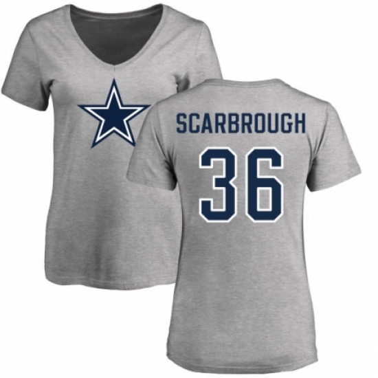 NFL Women's Nike Dallas Cowboys #36 Bo Scarbrough Ash Name & Number Logo Slim Fit T-Shirt