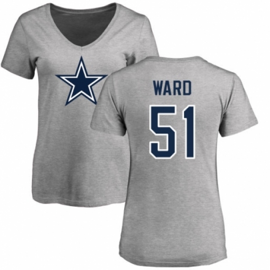 NFL Women's Nike Dallas Cowboys #51 Jihad Ward Ash Name & Number Logo Slim Fit T-Shirt