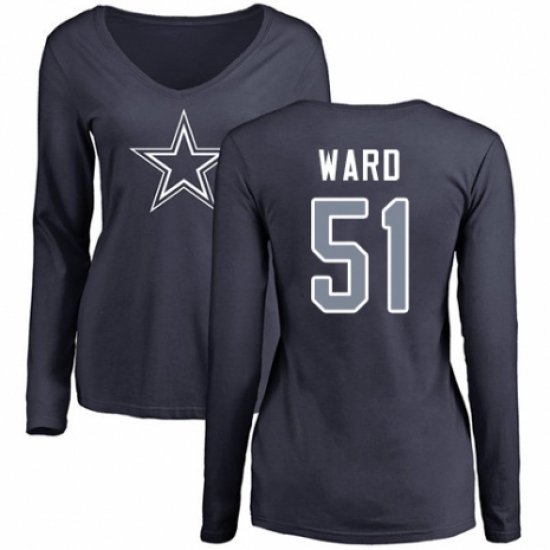 NFL Women's Nike Dallas Cowboys #51 Jihad Ward Navy Blue Name & Number Logo Slim Fit Long Sleeve T-Shirt