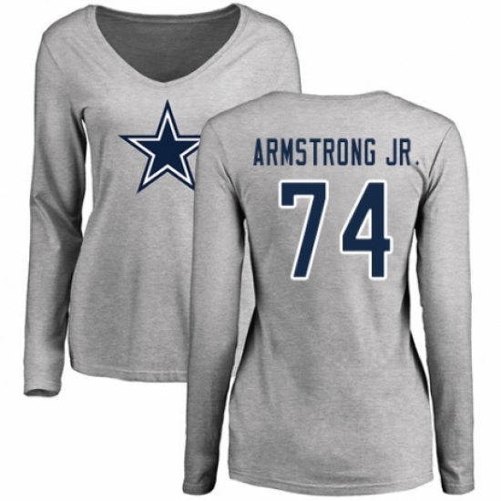 NFL Women's Nike Dallas Cowboys #74 Dorance Armstrong Jr. Ash Name & Number Logo Slim Fit Long Sleeve T-Shirt