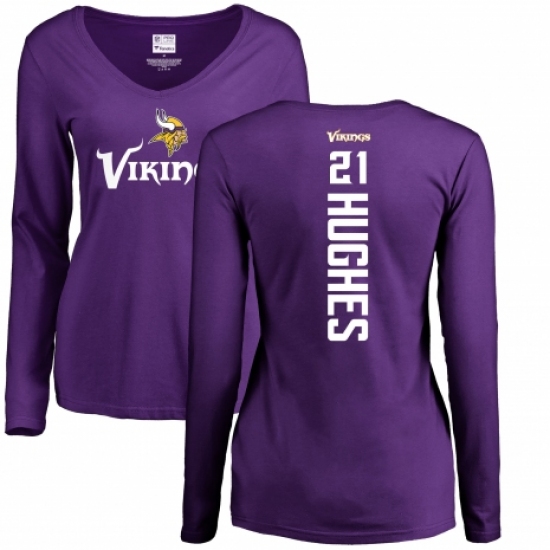 >NFL Women's Nike Minnesota Vikings #21 Mike Hughes Purple Backer Slim Fit Long Sleeve T-Shirt