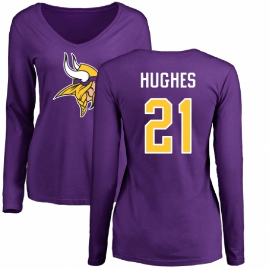 NFL Women's Nike Minnesota Vikings #21 Mike Hughes Purple Name & Number Logo Slim Fit Long Sleeve T-Shirt