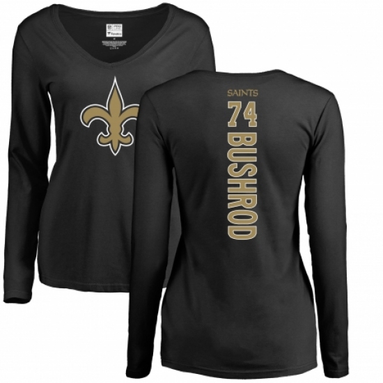 NFL Women's Nike New Orleans Saints #74 Jermon Bushrod Black Backer Slim Fit Long Sleeve T-Shirt