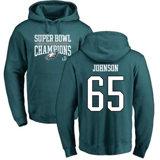 Nike Philadelphia Eagles #65 Lane Johnson Green Super Bowl LII Champions Pullover Hoodie
