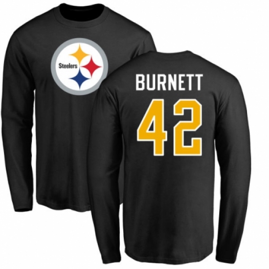 >Nike Pittsburgh Steelers #42 Morgan Burnett Black Name & Number Logo Long Sleeve T-Shirt