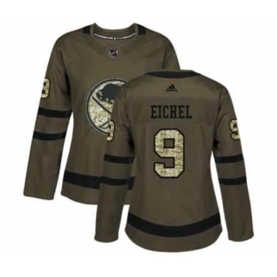 >Women's Adidas Buffalo Sabres #9 Jack Eichel Authentic Green Salute to Service NHL Jersey