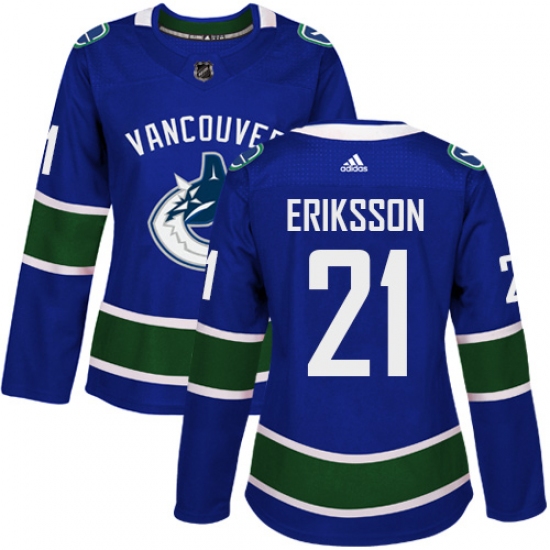 Home>NHL>Vancouver Canucks>Loui Eriksson>Women's Adidas Vancouver Canucks #21 Loui Eriksson Authentic Blue Home NHL Jersey