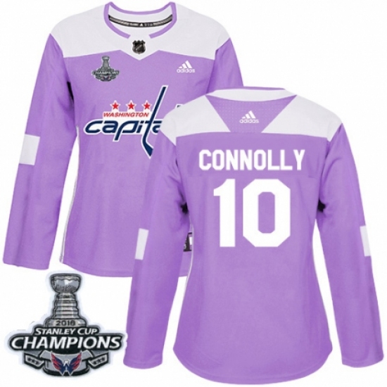 >Women's Adidas Washington Capitals #10 Brett Connolly Authentic Purple Fights Cancer Practice 2018 Stanley Cup Final Champions NHL Jersey