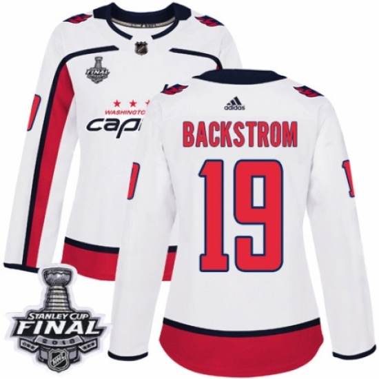 Women's Adidas Washington Capitals #19 Nicklas Backstrom Authentic White Away 2018 Stanley Cup Final NHL Jersey
