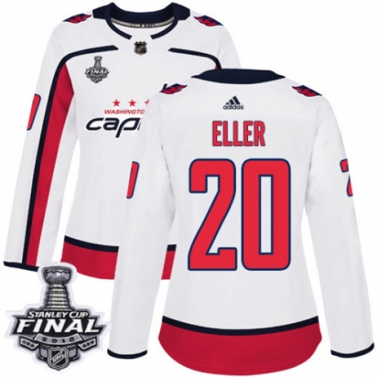 Women's Adidas Washington Capitals #20 Lars Eller Authentic White Away 2018 Stanley Cup Final NHL Jersey