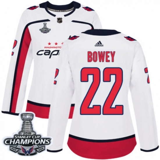 Women's Adidas Washington Capitals #22 Madison Bowey Authentic White Away 2018 Stanley Cup Final Champions NHL Jersey