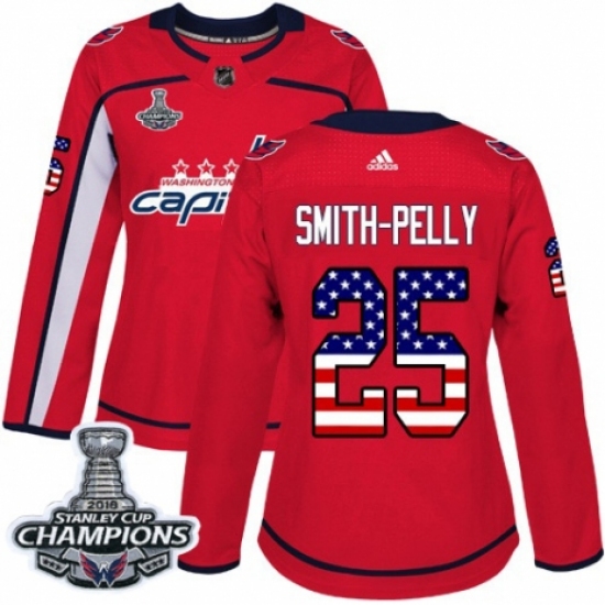 Women's Adidas Washington Capitals #25 Devante Smith-Pelly Authentic Red USA Flag Fashion 2018 Stanley Cup Final Champions NHL Jersey