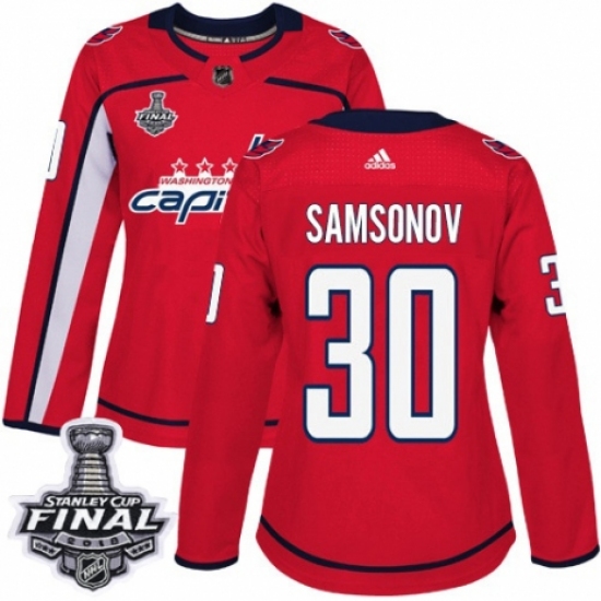 Women's Adidas Washington Capitals #30 Ilya Samsonov Authentic Red Home 2018 Stanley Cup Final NHL Jersey
