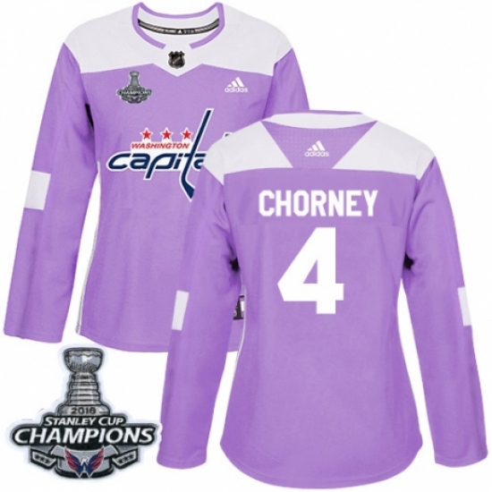 Women's Adidas Washington Capitals #4 Taylor Chorney Authentic Purple Fights Cancer Practice 2018 Stanley Cup Final Champions NHL Jersey