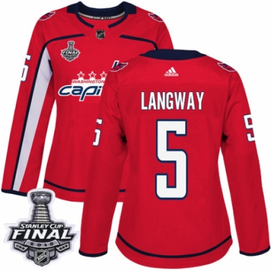 Women's Adidas Washington Capitals #5 Rod Langway Authentic Red Home 2018 Stanley Cup Final NHL Jersey