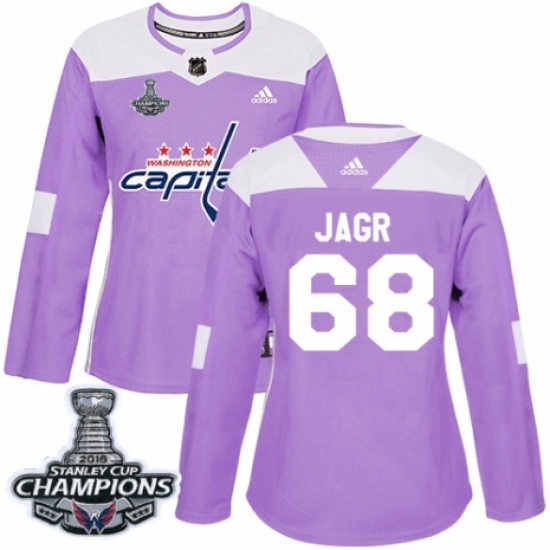 Women's Adidas Washington Capitals #68 Jaromir Jagr Authentic Purple Fights Cancer Practice 2018 Stanley Cup Final Champions NHL Jersey