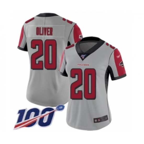 >Women's Atlanta Falcons #20 Isaiah Oliver Limited Silver Inverted Legend 100th Season Football Jersey