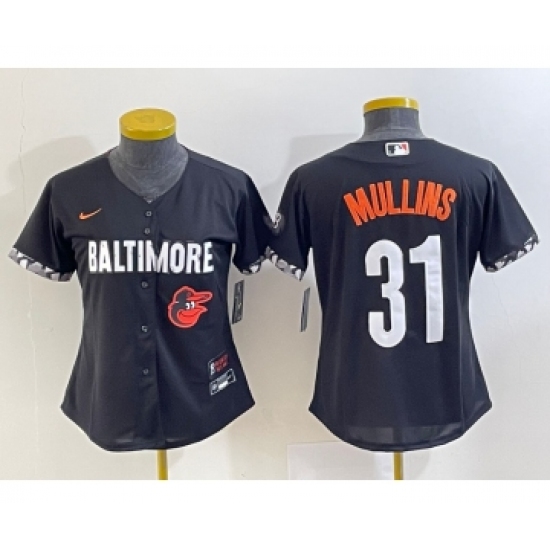 Women's Baltimore Orioles #31 Cedric Mullins Black 2023 City Connect Cool Base Stitched Jersey 1